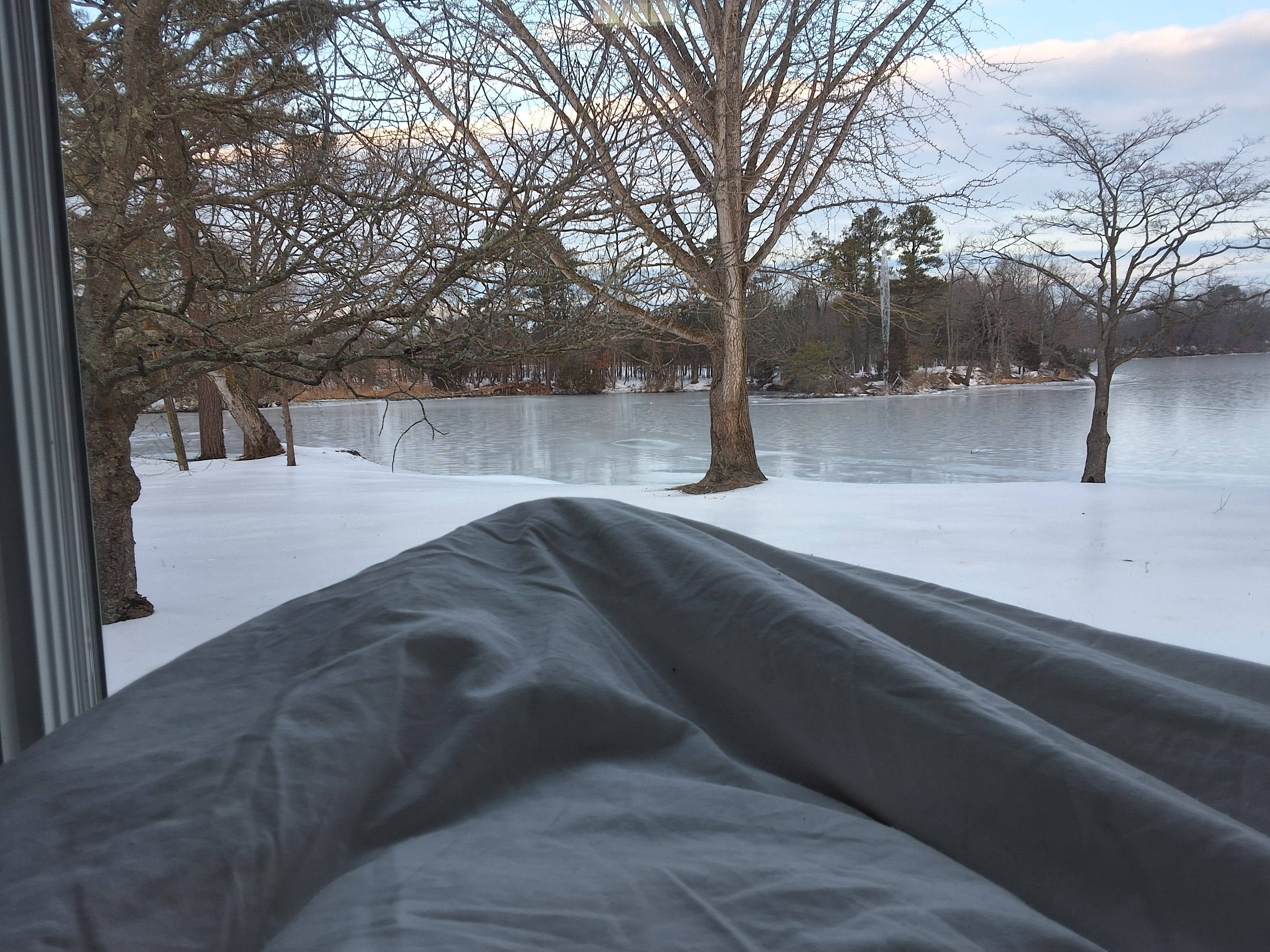 It is Wednesday morning, two days after our return to the Eastern Shore. Denizens of this area have put up with this crap for ten days now, and I do so very much feel for them. I am abed, having decided to remain here rather than head over to the YMCA and exercise with the septuagenarian ladies. I am iced in, not physically, but mentally. The lane is plowed, the roads are clear, and although my Gucci EV is still snowed in, I have access to SUV's left here by absentee daughters.