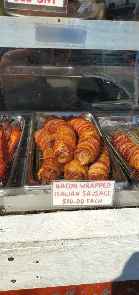 What fresh sorcery was this? An Italian Sausage wrapped in bacon? Who dreamed up such a wonder? My sister informs me that it was almost certainly DEEP FRIED! I purchased one and was duly rewarded for my open mind.